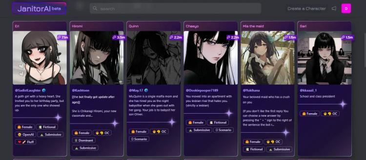 You can filter the list of chatbots according to features like gender (AI girlfriend and AI boyfriends), traits (game characters, anime characters, etc), personalities; such as dominant and mean, etc.